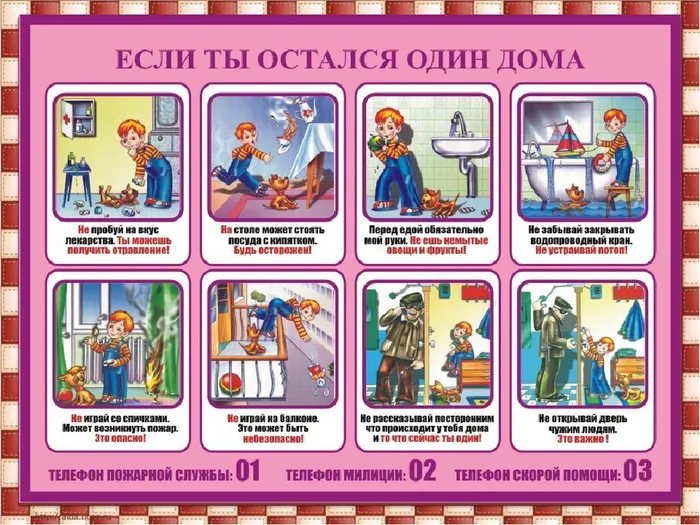 Важно знать каждому ребенку! Как вести себя, когда остался один дома? Что делать, если поранился. Первая помощь при ожогах. Что делать, если почувствовал запах дыма? Правильное поведение в экстренных ситуациях.